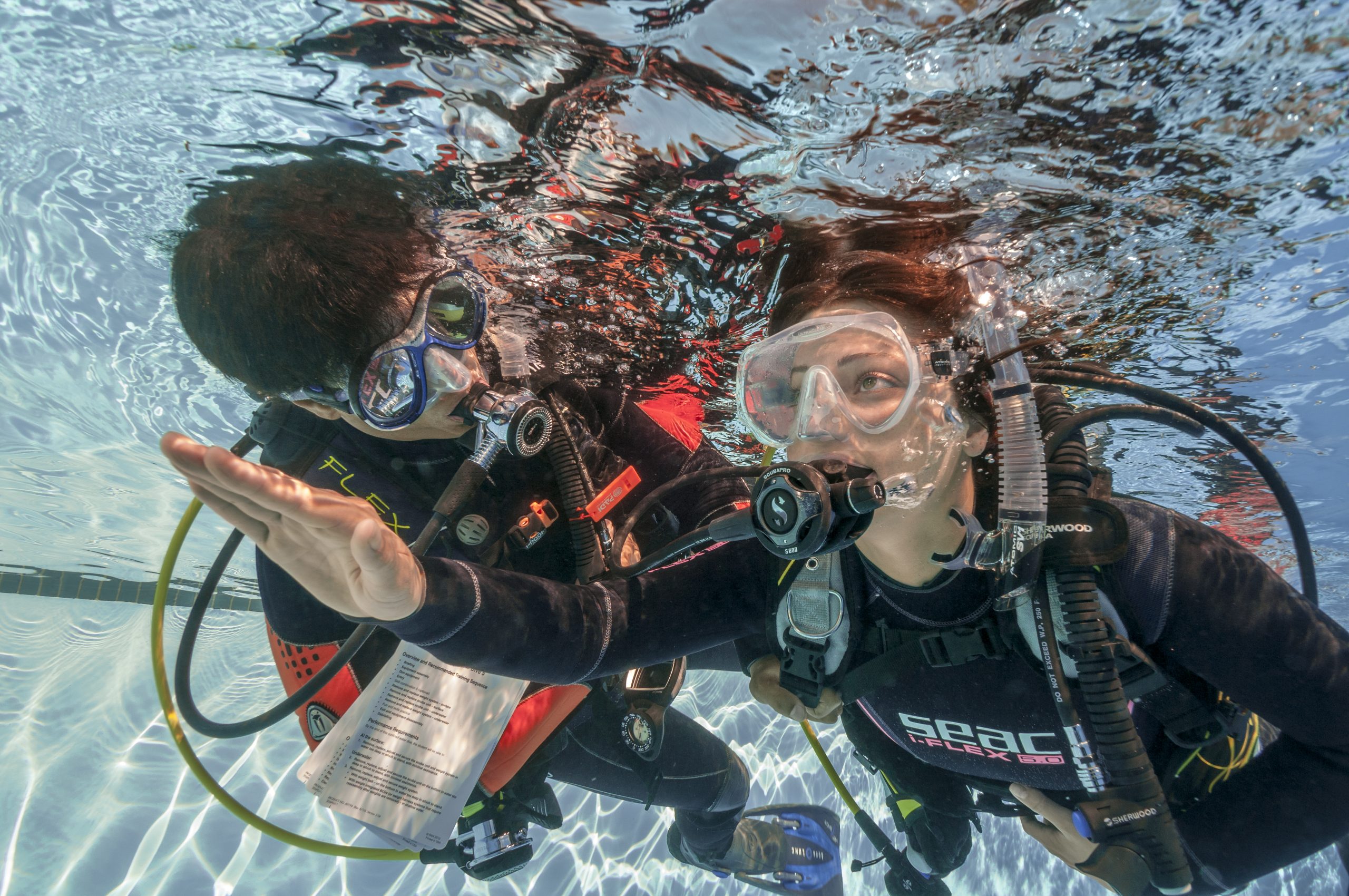 Uczestnicy zazwyczaj poznają teorię, sprzęt, a także ćwiczą podstawowe umiejętności w płytkiej wodzie przed kolejnym nurkowaniem.
