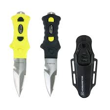 Wśród akcesoriów nurkowych da się wyróżnić kilka różnych typów noży. Najbardziej popularne to noże proste, które z jednej strony mają gładkie ostrze, a z drugiej są wyposażone w piłę. W asortymencie sklepu można również znaleźć noże z ostrzem gładkim po obu stronach. W wielu konstrukcjach występuje też specjalne wycięcie do cięcia stalowych linek. Coraz bardziej popularne stają się tzw. szarpaki, które są przeznaczone do sprawnego przecinania lin i taśm. Ich ostrza są skierowane do wnętrza i zabezpieczone od zewnątrz, co sprawia, że oferują doskonałe cięcie, jednocześnie zapewniając bezpieczeństwo nurka.