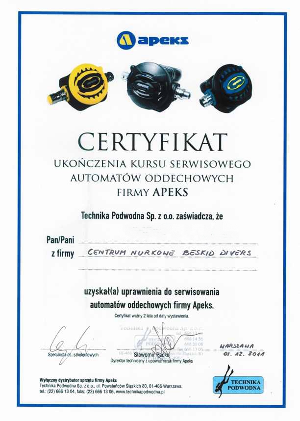 Serwis sprzętu nurkowego można zrealizować w specjalistycznych centrach nurkowych oferujących takie usługi. Wiele z nich posiada autoryzacje do serwisowania sprzętu konkretnej marki. Na przykład w Bielsku-Białej, Centrum Nurkowe BeskidDivers zajmuje się serwisowaniem sprzętu.