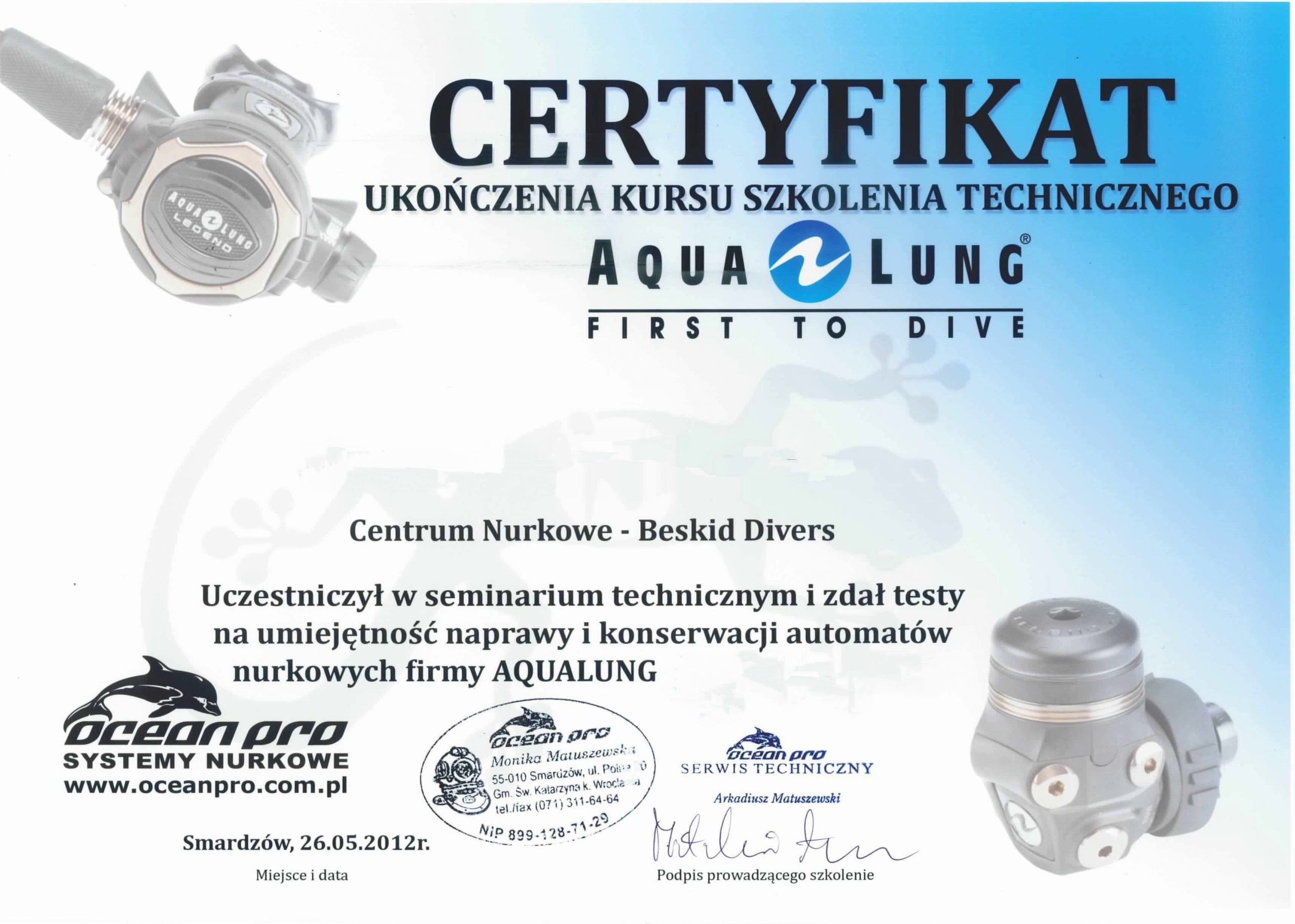 Jako certyfikowany serwis sprzętu nurkowego dokonujemy napraw oraz regularnych przeglądów serwisowych, stosując jedynie oryginalne. . .